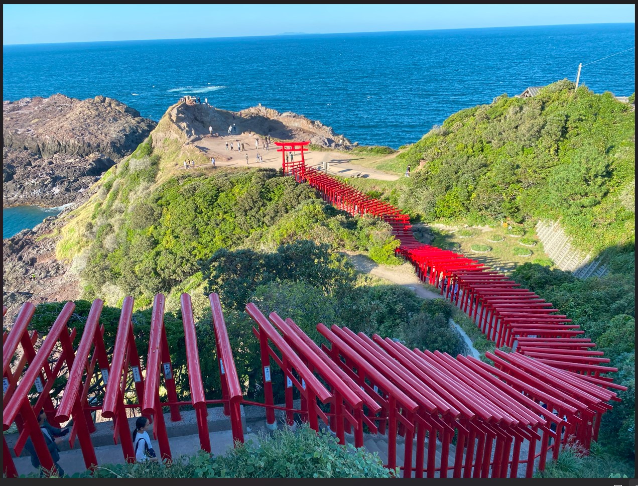 一日目のコースは、 角島大橋~元乃隅稲成神社(界隈うろちょろ)~長門湯本温泉